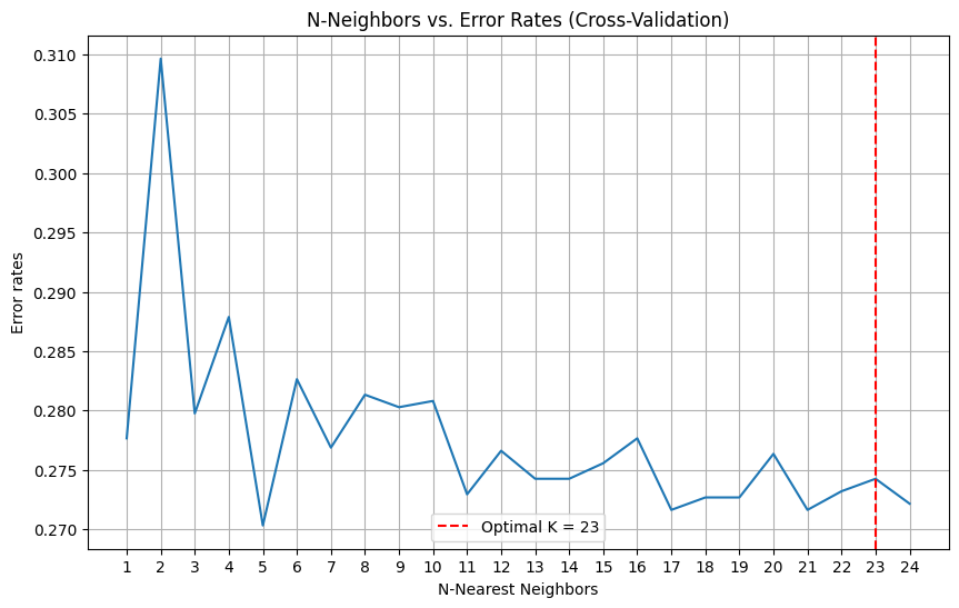 Optimal K-value is found empirically & cross-validated